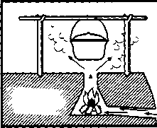 - котелок с кипящим содержимым ставится внутрь и плотно прикрывается мхом и дерном.