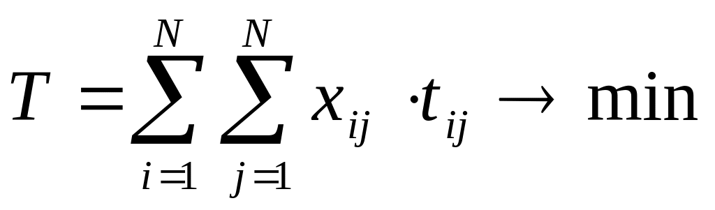 Имеется N видов работ и столько же рабочих. Время tij выполнения i-м рабочим j-ой работы приведены в таблице. Составить такой план выполнения работ, при котором все работы были выполнены, каждый рабочий выполнял только одну работу, а суммарное время выполнения всех работ было бы минимальным.