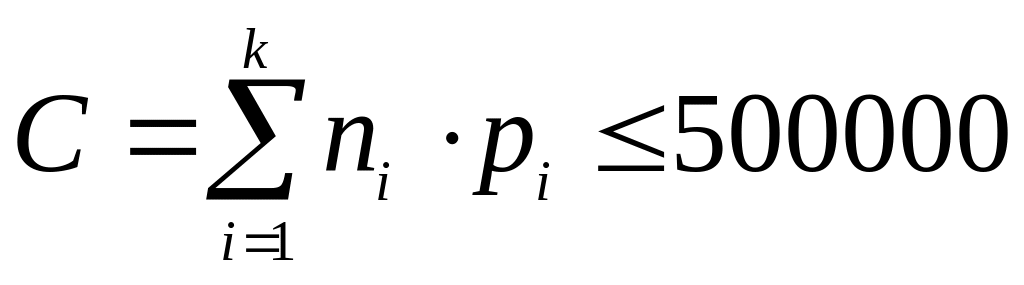 Производительность pi станков i-го типа, занимаемая площадь si,и их стоимость ci (в условных единицах) приведены в таблице. Определить число станков различного типа ni необходимых для обеспечения максимального выпуска изделий М цехом, площадь которого равна S, при ограничениях фондов на закупку станков C.