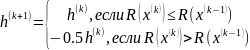 Точность по функции – абсолютная разность между двумя значениями функции, полученными на предыдущем и текущем этапах поиска не превышает наперед заданной величины. |R(x(k))-R(x(k-1))|<=ε