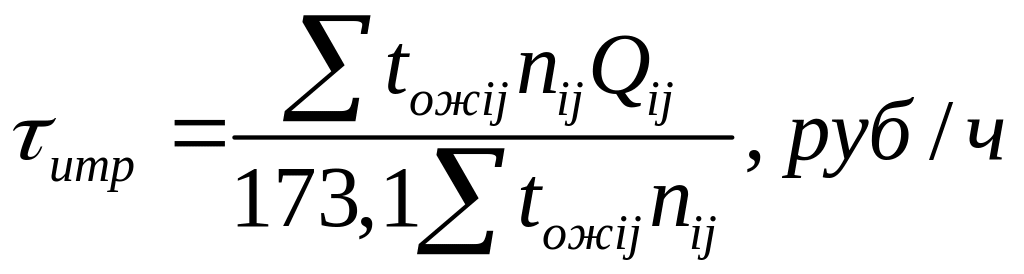 Средняя часовая тарифная ставка рабочих по отдельным этапам рассчитывается по формуле: