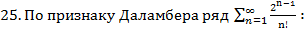 19. Признаком Даламбера исследуется сходимость ряда с общим членом: