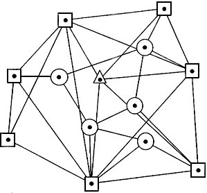 Рис.П.1.1 Схема спутниковой городской геодезической сети с тремя исходными пунктами