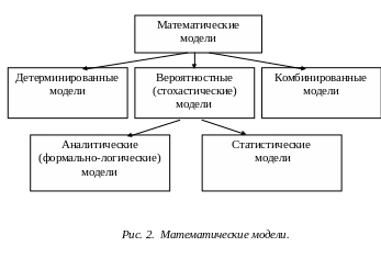 Различают три класса математических моделей: детерминированные, стохастические и комбинированные.