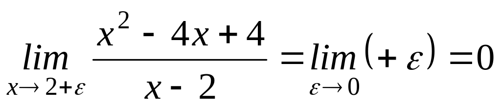 Решение. В точке х = 2 функция не определена, тем самым, нарушено условие непрерывности, значит, в точке х = 2 функция терпит разрыв. Чтобы установить характер разрыва, найдем односторонние пределы: