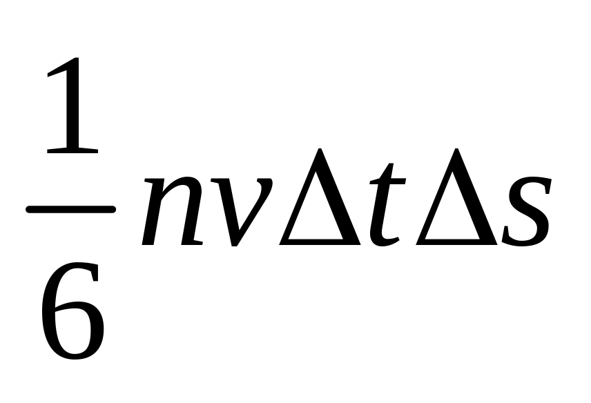 в любой момент времени вдоль оси x движется 1/3 всех молекул (1/3 N), находящихся в объеме выделенного цилиндра, а к рассматриваемой площадке – 1/6 N, так как два направления равновероятны.
