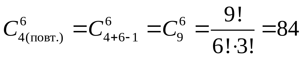 Сочетания с повторениями из n элементов по т могут состоять не только из т различных элементов, но и из т каких угодно и сколько угодно раз повторяющихся элементов, взятых из данного множества n элементов.
