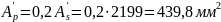 Площа розтягнутої арматури Ар дорівнює