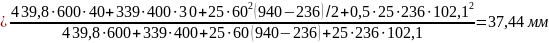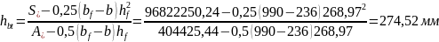 Висота стиснутої зони бетону визначається як для таврового перерізу