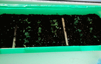 На рисунке 18 представлен посадочный материал лука посевного и всходы Бэби салата «Скатерть-самобранка» через 1,5 недели после посадки.