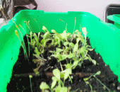 Четвертым этапом необходимо было создать благоприятные условия для роста и развития рассады зеленных культур (рисноук 16). Для этого заранее подписанные культуры в минипарниках накрывались крышками и выставлялись на подоконник.