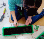 Третий этап предполагал распределение семенного материала зеленных культур по подготовленным к посадке минипарникам. Для этого использовались следующие сельскохозяйственные инструменты: пульверизатор для смачивания почвенного слоя, ручной совок и ручные грабли.