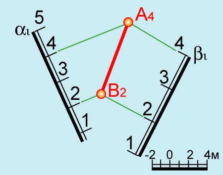 Такая задача может встретиться при определении линии пересечения плоских откосов насыпей или выемок.