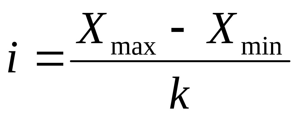Если вариация признака проявляется в сравнительно узких границах и распределение носит равномерный характер( нормальный или близкий к нормальному закон распределения), то строят группировку с равными интервалами.