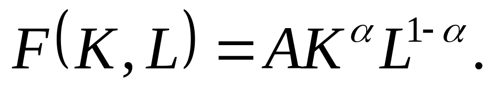 Також припускається, що річний випуск у кожен момент часу визначається лінійно-однорідною неокласичною виробничою функцією від двох змінних (ресурсів) K та L.