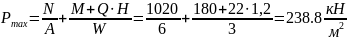 Определим напряжения в грунте под подошвой фундамента в направлении длинной стороны без учета веса фундамента и грунта на его обрезах от расчетных нагрузок для третьего сочетания, в котором при нормативных нагрузках мы получили максимальное краевое напряжение:
