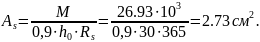 Принимаем Ø 12 A-III с шагом s = 200 мм (As=4,52см2 на 1 п.м.).