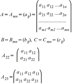 Матрицей A=Amn порядка m*n называется прямоугольная таблица чисел, содержащая m - строк и n - столбцов.