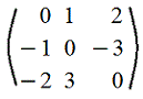 10. Кососимметрическая матрица: m=n и aij=-aji (т.е. на симметричных относительно главной диагонали местах стоят противоположные элементы). Следовательно, на главной диагонали стоят нули (т.к. при i=j имеем aii=-aii)