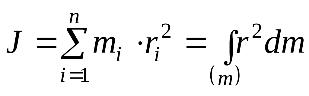 Момент инерции величина аддитивная. Это свойство позволяет определить момент инерции любого тела как сумму моментов инерции всех материальных точек mi составляющих тело.