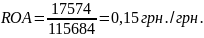 Коефіцієнт прибутковості активів ROA= чистий прибуток (р.220 ф.№2) / середня величина активів ( р.280 ф.№1) – загальний показник вимірювання прибутковості вкладених у бізнес активів.