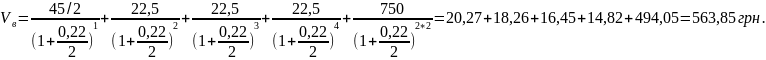 де INT – відсоткові виплати, що здійснюються по облігації, що становить 45 грн.;