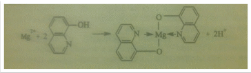 Реакция с 8-оксихинолином. Катионы Mg2+ образуют с 8-оксихинолином в аммиачной среде при рН от 8 до 13 (лучше – при нагревании) желто-зеленый кристаллический осадок внутрикомплексного соединения – оксихинолината мания: