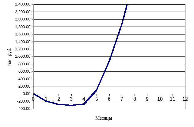 Проиллюстрируем модель окупаемости графиком финансового профиля проекта: