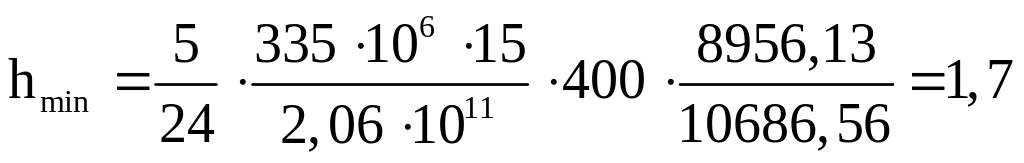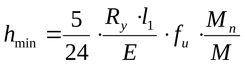 Определяем минимальную высоту балки hmin, исходя из условия обеспечения жёсткости: