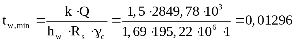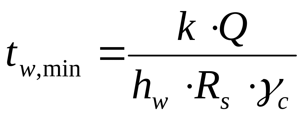 Определяем минимальную толщину стенки tw,min исходя из условия её работы на срез: