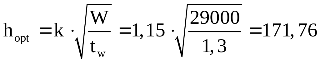 Для значения tw =1,3 см. определяем оптимальную высоту балки hopt: