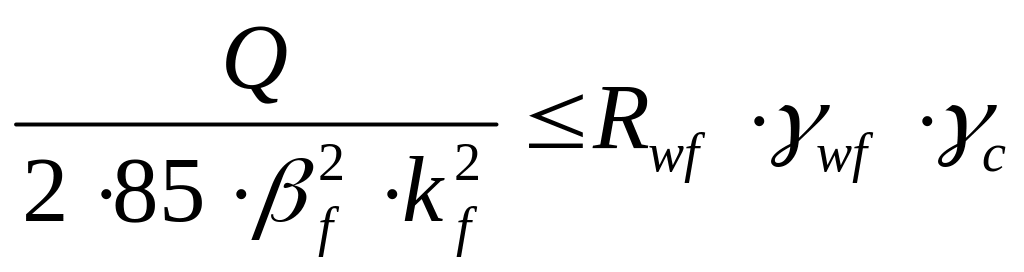 где βf – коэффициент, принимаемый при сварке элементов из стали с пределом текучести до 530 МПа при полуавтоматической сварке βf = 0,7;
