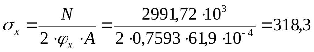 φх – коэффициент продольного изгиба, определяемый по действительной гибкости λх.