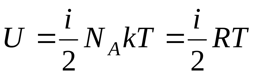 Згідно закону рівнорозподілення| енергії за ступенями вільності на кожну ступінь вільності молекули ідеального газу доводиться|припадає,приходиться| в середньому однакова енергія, рівна 1/2kT (k – постійна Больцмана). Тому внутрішню енергію одного кіломоля ідеального газу можна знайти за формулою: