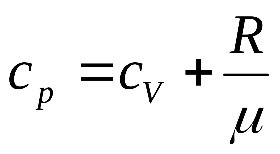 Таким чином, питома теплоємність Ср більше питомої теплоємності Сv на величину R/μ, яка є роботою, що здійснюється|скоюється,чиниться| одиницею маси газу при розширенні, що відбувається|походить| при постійному тиску|тисненні| в результаті|унаслідок,внаслідок| підвищення його температури на один градус.
