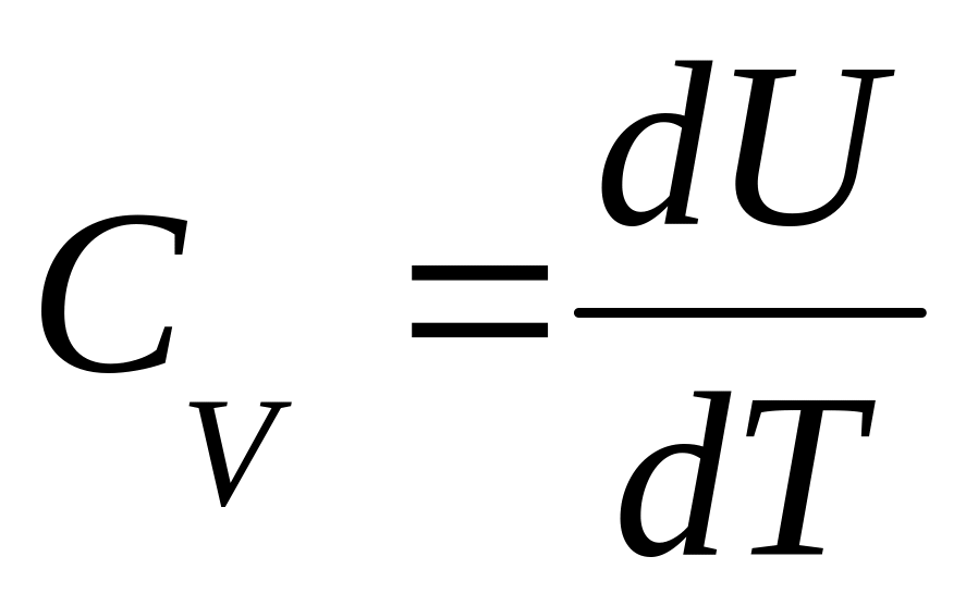 В цьому випадку dV = 0 і робота зовнішніх сил рівна нулю dA = pdV = 0, отже, все передане газу ззовні тепло йде на збільшення його внутрішньої енергії dU. Тоді з|із| рівняння (2) виходить, що теплоємність при постійному об'ємі|обсязі| рівна: