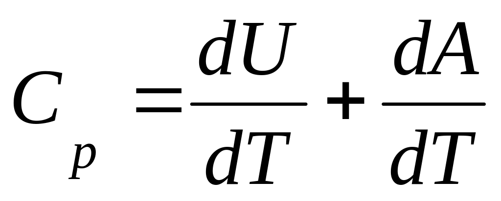 В цьому випадку отримане|отримуване| газом ззовні тепло йде не тільки|не лише| на збільшення його внутрішньої енергії dU, але і на здійснення газом роботи dA проти|супроти| зовнішньої сили тиску|тиснення|. Тоді теплоємність при постійному тиску|тисненні| рівна: