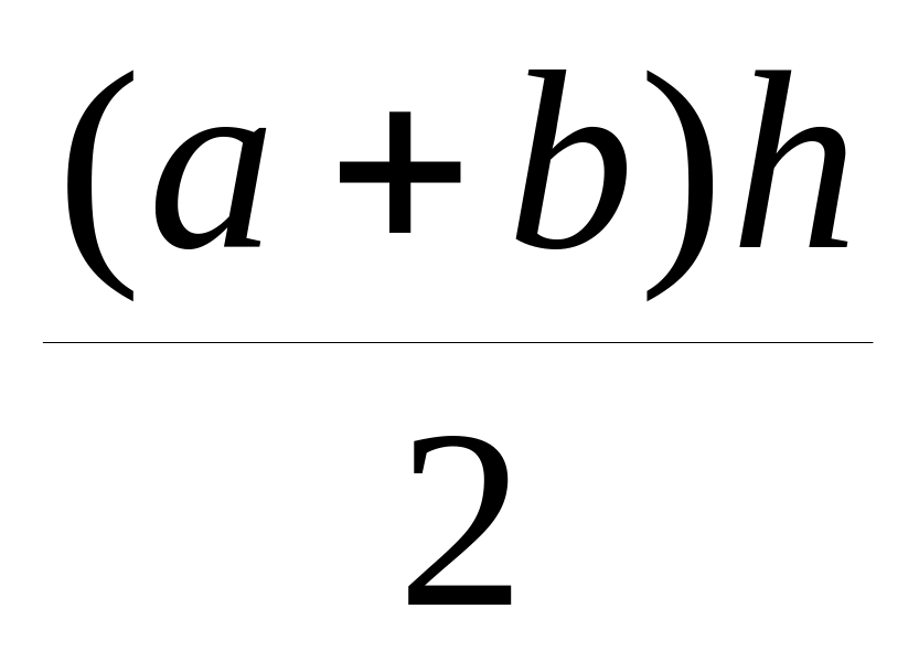 a, b, c – сторони трикутника, A, B, C – кути навпроти відповідних сторін, p – півпериметр; h – висота; для трапеції – a, b – сторони.