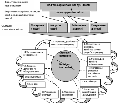 За допомогою петлі якості здійснюється взаємозв’язок виробника і споживача з усіма об’єктами управління якістю в організації.