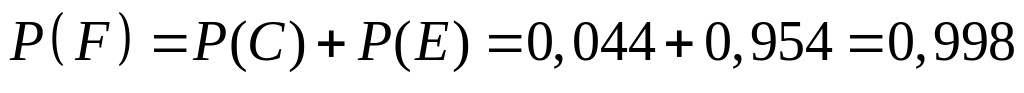 д) Пусть событие F – студент сдал хотя бы один экзамен, т.е. либо 1, либо 2, либо 3.