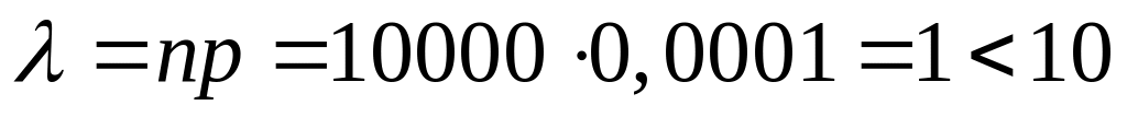 5. Учебник издан тиражом 10000 экземпляров. Вероятность того, что экземпляр учебника сброшюрован неправильно, равна 0,0001. Найдите вероятность того, что тираж содержит 5 бракованных книг.
