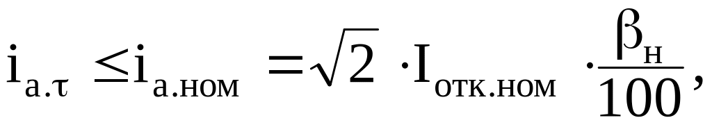 где iа.ном – номинальное допускаемое значение апериодической составляющей в отключаемом токе в момент размыкания дугогасительных контактов, для времени τ.