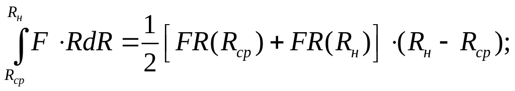 При помощи графика FR(R) рис. 8, находятся значения площадей (методом трапеций):