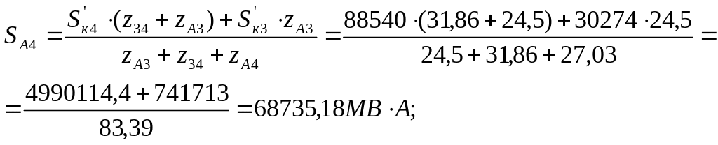 Sн, А – 3 – 4 – А = SA3 + S34 + SА4 + SA3 + S34 + SА4 = 50078,8 + 19343,4 + 68735,18 + +5077,8 + 985,2 + 10555,5 =154775,88 кВ·А;