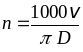 Зная v, определяется частота вращения шпинделя станка, мин-1