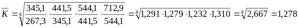 Середня геометрична використовується для обчислення середніх темпів зростання в рядах динаміки: