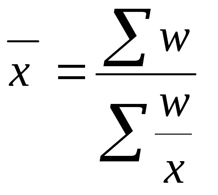 Середня гармонійна – це обернена до середньої арифметичної із обернених значень ознаки. Їх обчислюють при визначенні середніх витрат праці на одиницю продукції. При розрахунку середньої гармонічної зваженої відомими є загальний обсяг ознаки (w= x·f), індивідуальні значення ознаки (x), але невідома частота (f ).