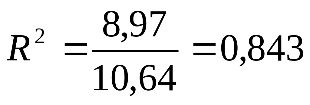 тобто 84,3% варіації врожайності зернових залежить від варіації кількості внесених добрив, а 15,7% припадає на інші фактори.