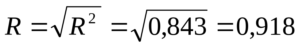 Корінь квадратний з коефіцієнта детермінації називають індексом кореляції R. Коли зв’язок лінійний R=|r|, що підтверджують обчислення: