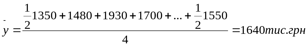 Для моментного ряду , в якому є лише інформація про стан явища на початок і кінець періоду середній рівень може бути розрахований як просто середня арифметична